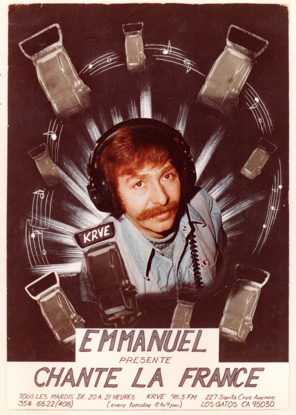 “Chante la France” was the name of the show on KRVE (These call letters now belongs to a station in Louisiana) 95.3FM in Los Gatos, a Portuguese language station, now [in 2024] a contemporary Christian station called KJLV.