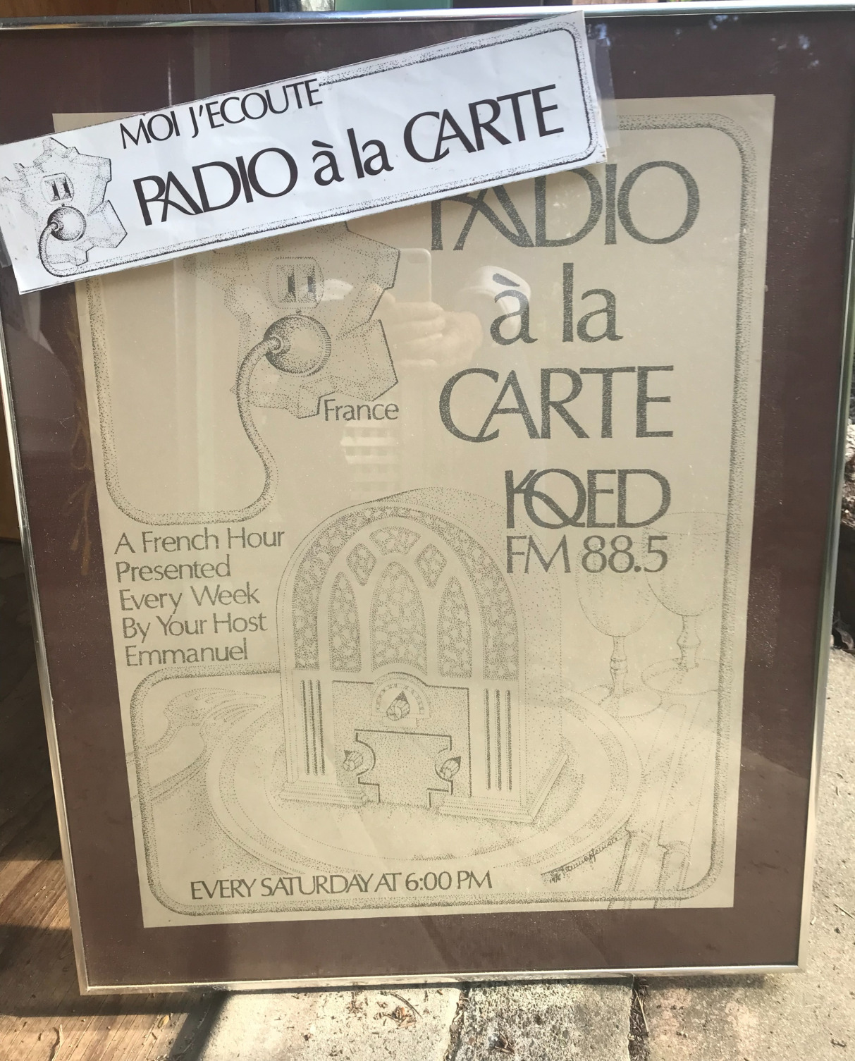 On May 12, 1976, I negotiated a spot on KQED 88.5 FM for Wednesday night at first and then moved to Saturday afternoon, at 4:30pm at first then at 6pm soon after. The three major players in this new venture (besides my wife-to-be that I met at the French Consulate while looking for material to be broadcast) were KQED FM Music Producer and Program Director Gene Parrish, the French Consul Adjoint Bertrand Rault and the producer and engineer Sedge Thompson who was at the console behind the glass rolling the tapes and spinning the records. It was said at the time that my shows had a potential of 40,000 listeners in a 50 miles radius. Later on, I was told by KQED that I had an audience of about 8,000 people listening to at least 10 minutes to the show, mainly due to the fact that my show was following a very popular program "All things considered".